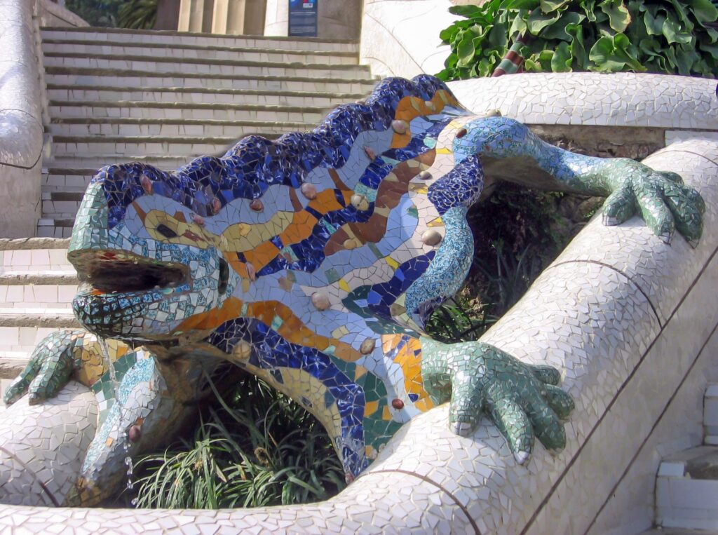 …hasta la famosísima fuente de la escalera que vemos en esta fotografía, con el dragón de trencadís (la técnica de utilizar trozos de cerámica rota para crear la decoración).