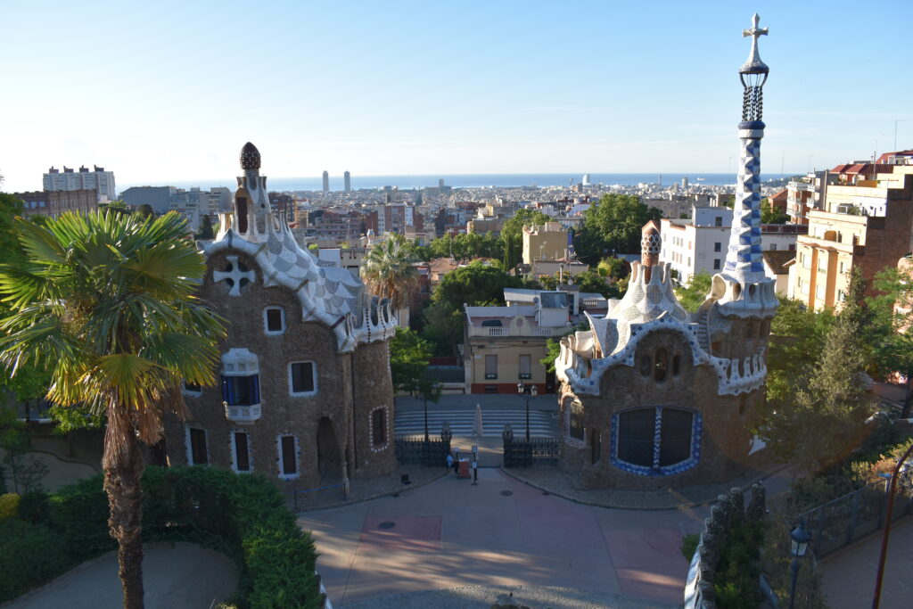 Comeremos (incluido) y nos iremos al PARK GÜELL. Como hemos dicho el cliente más importante que tuvo Gaudí en su vida (cliente y amigo) fue el industrial Eusebi Güell, que le hizo numerosos encargos a lo largo de su vida. Uno de ellos fue un proyecto de urbanización de lujo que consistía en crear los espacios comunes y vender parcelas en las que los diferentes propietarios edificaran su casa. No funcionó y acabó convirtiéndose en un parque público (los herederos de Güell se lo vendieron al Ayuntamiento) donde podremos ver un maravilloso mundo de fantasía, desde las casitas de la entrada (los edificios de administración, que posiblemente se inspiran en la casa de chocolate de Hansel y Gretel, una ópera que había visto Gaudí en el Liceo)…