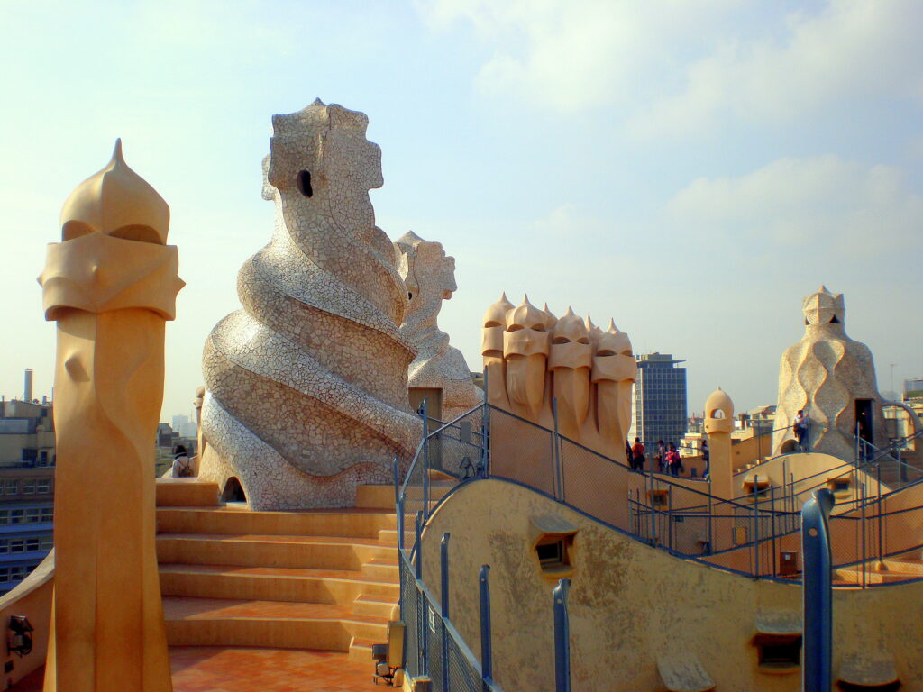 Por la tarde nos iremos a una de las obras maestras de Gaudí, la CASA MILÁ, conocida también como LA PEDRERA, porque su fachada de piedra casi recuerda a una enorme cantera, o tal vez a un fondo marino (la decoración de forja de los balcones puede recordar a raíces, o a algas…).