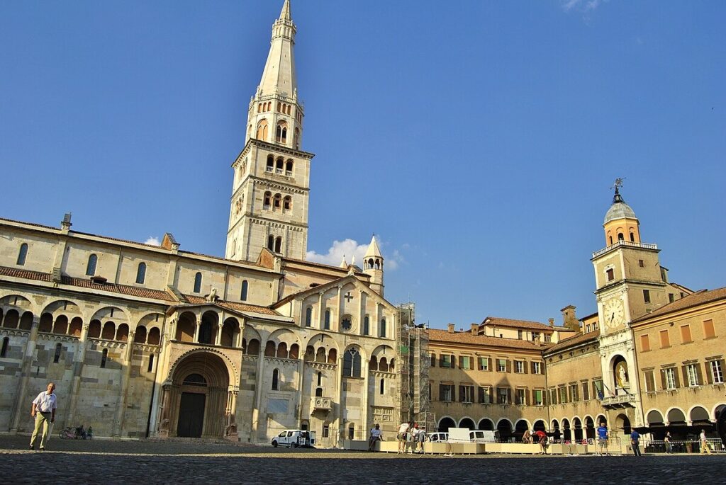 El duomo empezó a erigirse en el siglo XI sobre la tumba de Geminiano de Módena, un obispo del siglo IV. Hoy es una gran construcción románica en la que destacan, por encima de todo, los maravillosos relieves que hizo Wiligelmo para la fachada, entre las obras más extraordinarias de la escultura románica.