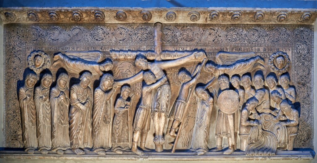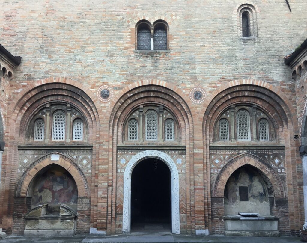 Muy cerca está la catedral, construida a lo largo del siglo XII. Es un magnífico edificio románico que, a medida que se fue construyendo, incorporó elementos góticos. Uno de los pórticos laterales, la “porta dei mesi”, tenía un maravilloso conjunto de esculturas representando a los meses del año, que ahora están en el museo de la catedral. Septiembre, por ejemplo, aparece representado como un campesino vendimiando (está previsto el cierre por obras del castillo Estense, pero aún se sabe si tendrá lugar durante el 2025 o no; en caso de que sea así, lo sustituiremos por el Museo dell’Opera del duomo, dedicado a la catedral, con los magníficos meses de la puerta de los meses, las pinturas de Cosme Turà, el principal representante de la escuela ferraresa del Renacimiento…)