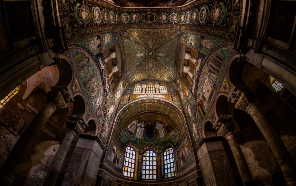 Todo iba más o menos bien, pero… los ostrogodos eran arrianos (cristianos, pero arrianos) y el emperador de Bizancio, Justiniano, era fanáticamente ortodoxo, así que invadió Italia y convirtió a Rávena en capital del exarcado, una provincia bizantina en Italia. Potenció el puerto de Classe, que se convirtió en el principal de la costa adriática italiana, donde se construyó la basílica de san Apolinar in Classe para depositar las reliquias del santo.