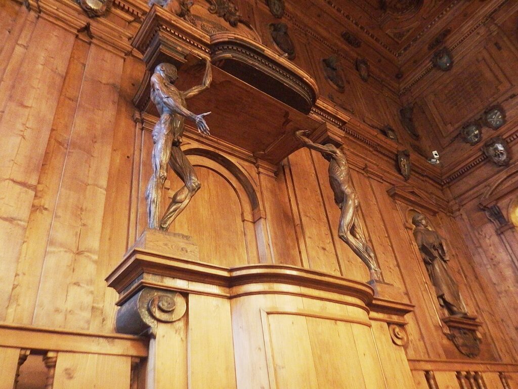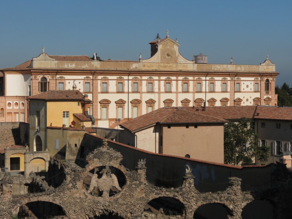 Comeremos (libre) y después nos iremos al Complejo monumental de la Pilotta, un verdadero símbolo del poder de la familia Farnesio. Hoy es un conjunto monumental único que alberga diferentes espacios, como la Biblioteca Palatina o el Teatro Farnesio, que veremos. Es una increíble construcción en madera hecha en el siglo XVII para la visita del gran duque de Toscana (al final tuvo que anular el viaje por enfermedad, pero a pesar de todo se hizo esta maravilla). ¡¡¡Absolutamente espectacular!!! Eso sí, montar un espectáculo aquí era carísimo, así que en total el teatro fue utilizado nueve veces por los Farnesio, la última con ocasión de la llegada de Carlos de Borbón al ducado (nuestro futuro Carlos III).