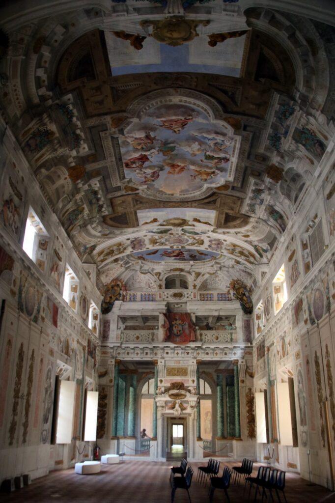 Hoy volvemos a los alrededores de MÓDENA, y comenzaremos el día en el Palacio de Sassuolo, una de las “delicias estenses”. ¿Qué es eso? Cuando la capital de los estados de los Este era Ferrara había allí una serie de residencias destinadas sobre todo al placer (también a la explotación agrícola del territorio, es verdad), de las que veremos una. Pues bien, cuando el papa recuperó aquella parte del ducado (la “devolución”) el duque Francisco I d’Este decidió construir otra en esta zona y levantó este bellísimo palacio.