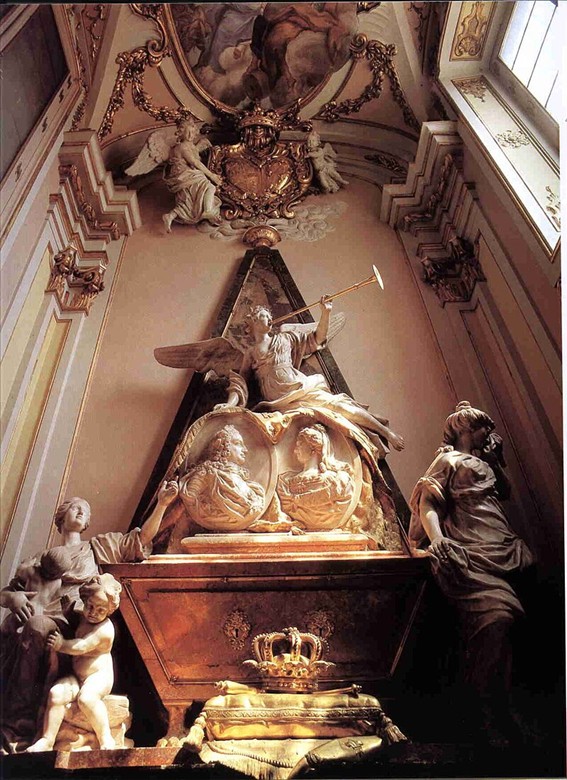 Eso sí, no dejaron la Granja, que de pronto se convirtió en la sede principal de la Corte, y no simplemente en un retiro para un rey jubilado. Hubo que ampliarla y enriquecerla, y el resultado es lo que podemos ver hoy visitando el interior del palacio, lleno de magníficas obras de arte (una fabulosa colección de tapices, p.ej., lámparas de vidrio de la fábrica de la Granja, esculturas, pinturas…), la colegiata (donde están enterrados Felipe V e Isabel de Farnesio, que no fueron a parar a la cripta del Escorial por decisión propia)…