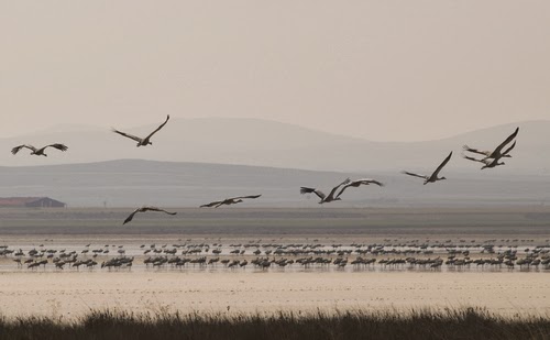 Como todos los años por esta época las grullas vuelven a la laguna de Gallocanta, una masa acuática situada entre las provincias de Teruel y Zaragoza que es la mayor laguna de agua salada endorreica (es decir, que no tiene salida a ningún río o mar) de toda Europa.